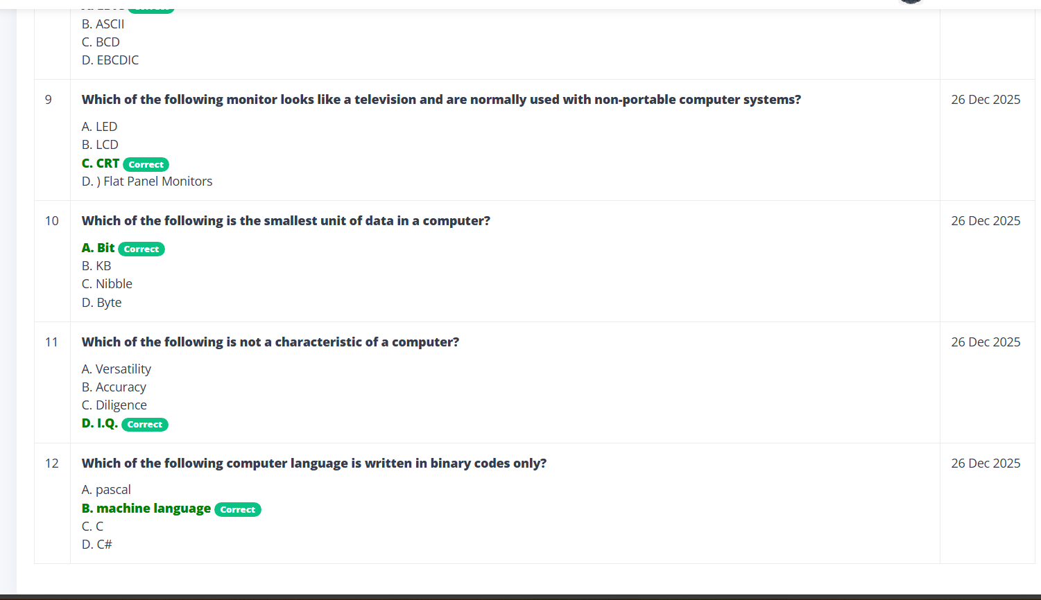 Check your test score, performance summary, and result details after submission.